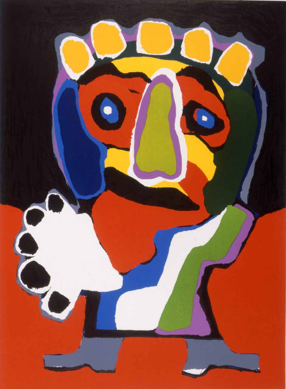 Karel Appel, Fond rouge, 1984 - Lithographie - Éditeur : Maeght Éditeur - Collection Ville de La Louvière